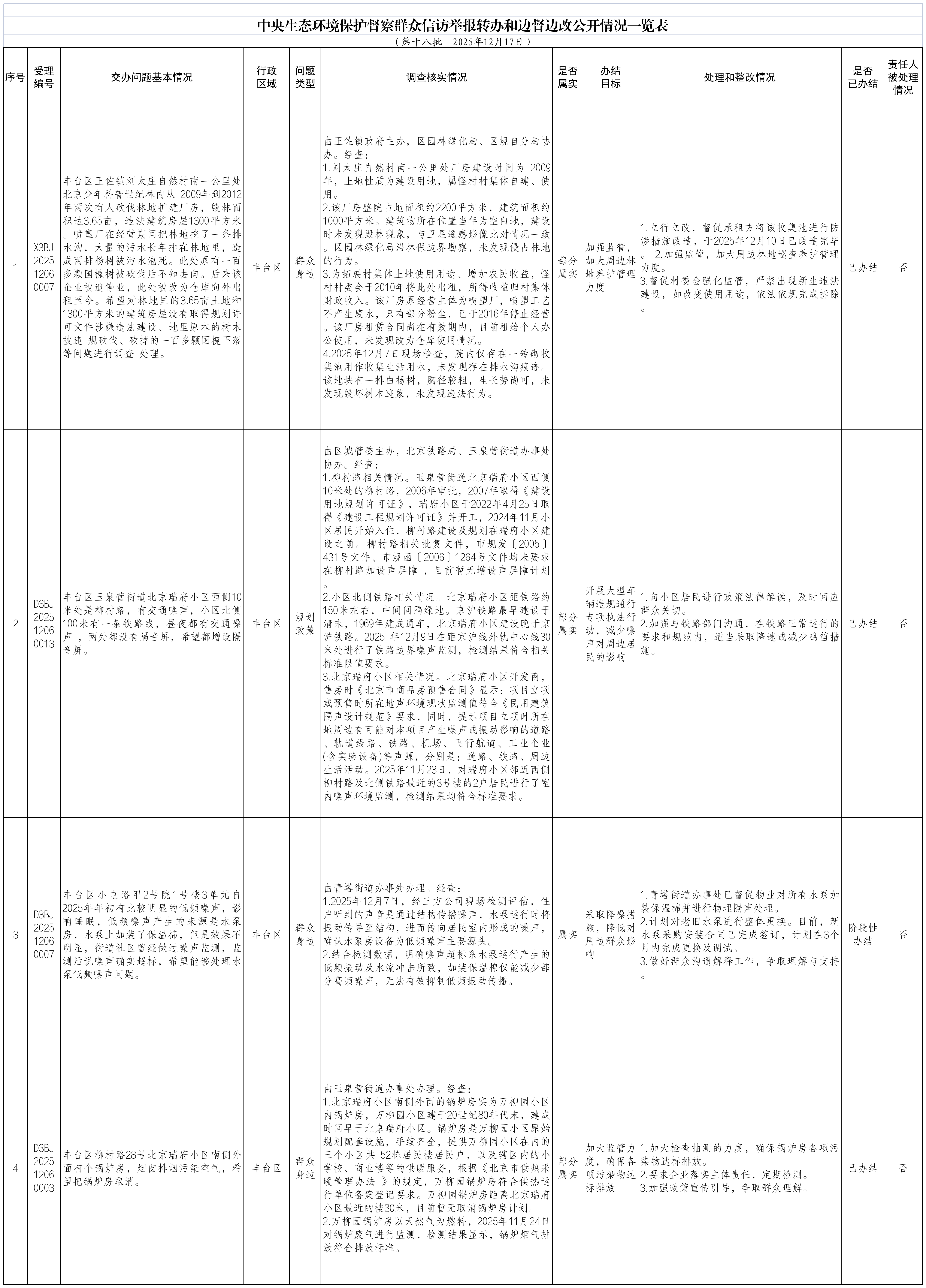2025年12月7日,中央第一生态环境保护督察组向北京市交办第十八批群众信访举报件37件(其中2件依据有关规定不予公开),涉及欧博(中国)官方网站 4件。现按要求向社会公开本区该批次《中央生态环境保护督察群众信访举报转办和边督边改公开情况一览表》(见下表)。